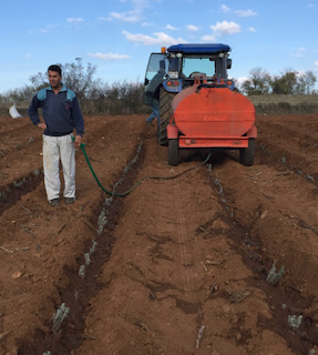 Tarlanın hazırlanması; Büyük parçalar kalmayana kadar toprak sürülür. 140 cm arayla toprakta karık (15 cm derinliğinde çizgi) açılır. Bu karık mutlaka suyun akış yönüne göre (aşağı doğru) açılmalı, fideler bu yönde dikilmelidir. Aksi halde, fide diplerinde oluşacak göllenme, kök çürümesine sebep olur.